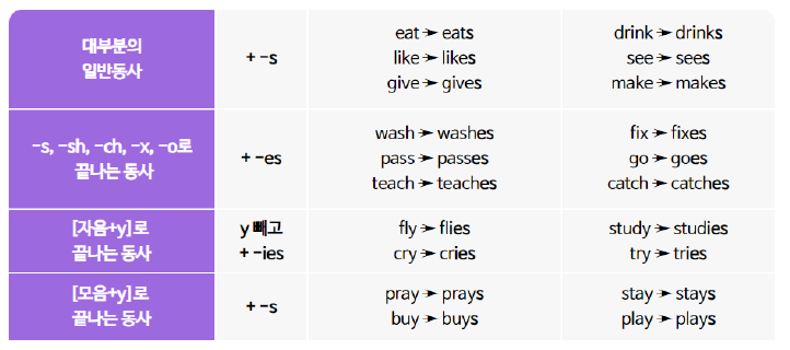Á¡Á¡ ³»¿ëÀÌ ¾î·Á¿öÁö´Â °Í °°Àºµ¥, ±Ã±ÝÇϰųª ¾î·Á¿î ºÎºÐ ÀÖÀ¸¸é ¾ðÁ¦µçÁö Áú¹®ÇØÁÖ¼¼¿ä^^ ¿À´ÃÀÇ ÇнÀ ÁÖÁ¦´Â 👉 ÀϹݵ¿»çÀÇ 3ÀÎĪ ´Ü¼öÇü Áö±Ý ½ÃÀÛÇÕ´Ï´Ù💟 ÀϹݵ¿»çÀÇ 3ÀÎĪ ´Ü¼öÇü Ãʵ¾î ¿À·¡¿µ¾î Çٽɹ®¹ý Áßµî Level 1 Unit 9° ![]() 📝 ¿À´ÃÀÇ ÇнÀ¸ñÇ¥ 1️⃣ 3ÀÎĪ ´Ü¼öÇü ¸¸µé±â 2️⃣ haveÀÇ 3ÀÎĪ ´Ü¼öÇü 📚 ÀϹݵ¿»çÀÇ 3ÀÎĪ ´Ü¼öÇü, Ãʵ¾î ¿À·¡¿µ¾î Çٽɹ®¹ý Start! 📌 ÇöÀç½ÃÁ¦ÀÇ ¹®Àå¿¡¼ Á־ 3ÀÎĪ ´Ü¼ö(he, she, it, Denny, Mr. Kim)ÀÏ °æ¿ì, ´ëºÎºÐÀÇ ÀϹݵ¿»ç´Â ³¡¿¡ -S³ª -es¸¦ ºÙ¿© [µ¿»ç¿øÇü+s/es]·Î ³ªÅ¸³À´Ï´Ù. Á־ 1 ÀÎĪ, 2ÀÎĪÀÎ °æ¿ì¿¡´Â µ¿»ç¿øÇüÀ» ±×´ë·Î »ç¿ëÇÕ´Ï´Ù. ![]() ¡á My mom makes breakfast everyday. ³ªÀÇ ¾ö¸¶´Â ¸ÅÀÏ ¾ÆÄ§½Ä»ç¸¦ ¸¸µå½Å´Ù ¡á Jenny teaches English at a middle school. Jenny´Â ÁßÇб³¿¡¼ ¿µ¾î¸¦ °¡¸£Ä£´Ù ¡á He speaks Chinese very well. ±×´Â Áß±¹¾î¸¦ ¾ÆÁÖ Àß ¸»ÇÑ´Ù ¡á She studies for the exam everyday. ±×³à´Â ¸ÅÀÏ ½ÃÇè°øºÎ¸¦ ÇÑ´Ù ¡á My sister stays in London. ³» ¿©µ¿»ý(¾ð´Ï, ´©³ª)Àº ·±´ø¿¡ ¸Ó¹«¸¥´Ù 📌TlP: ÀϹݵ¿»ç have´Â ¿¹¿ÜÀûÀ¸·Î 3ÀÎĪ ´Ü¼öÇüÀÌ hasÀÔ´Ï´Ù. ¡á Angela has two daughters. Angela´Â µþÀÌ µÎ ¸í ÀÖ´Ù ¡á My dad has a brand-new cell phone. ³ªÀÇ ¾Æºü´Â ÃֽŠÈÞ´ëÀüȸ¦ °¡Áö°í °è½Ã´Ù . . . 💟 Ãʵ¾î ¿À·¡¿µ¾î Çٽɹ®¹ý. ¿äÁ¡Á¤¸® 👉 Á־3ÀΡ ´Ü¼öÀÏ °æ¿ì, ÀϹݵ¿»ç³¡¿¡ -S³ª -es¸¦ºÙÀÔ´Ï´Ù. 👉 ÀÚÀ½+y·Î ³¡³ª´Â µ¿»ç´Â y¸¦ »©°í -ies¸¦ ºÙÀÔ ´Ï´Ù. 👉 haveÀÇ 3ÀΡ ´Ü¼öÇüÀº hasÀÔ´Ï´Ù ¿À´ÃÀÇ Ãʵ¾î ¿À·¡¿µ¾î Çٽɹ®¹ý 'ÀϹݵ¿»çÀÇ 3ÀÎĪ ´Ü¼öÇü' ¿½ÉÈ÷ °øºÎÇß³ª¿ä? ¼ö¾÷ ÈÄ ²À ¹®Á¦±îÁö Ç®¾îº¸½Ã±æ ¹Ù¶ó¸ç, ¼ö¾÷ °£ ±Ã±ÝÇϽŠÁ¡ÀÌ ÀÖÀ¸½Ã¸é ¾Æ·¡ÀÇ ¸µÅ©¸¦ ÅëÇØ ¹®ÀÇÇØÁÖ¼¼¿ä. °¨»çÇÕ´Ï´Ù. |
